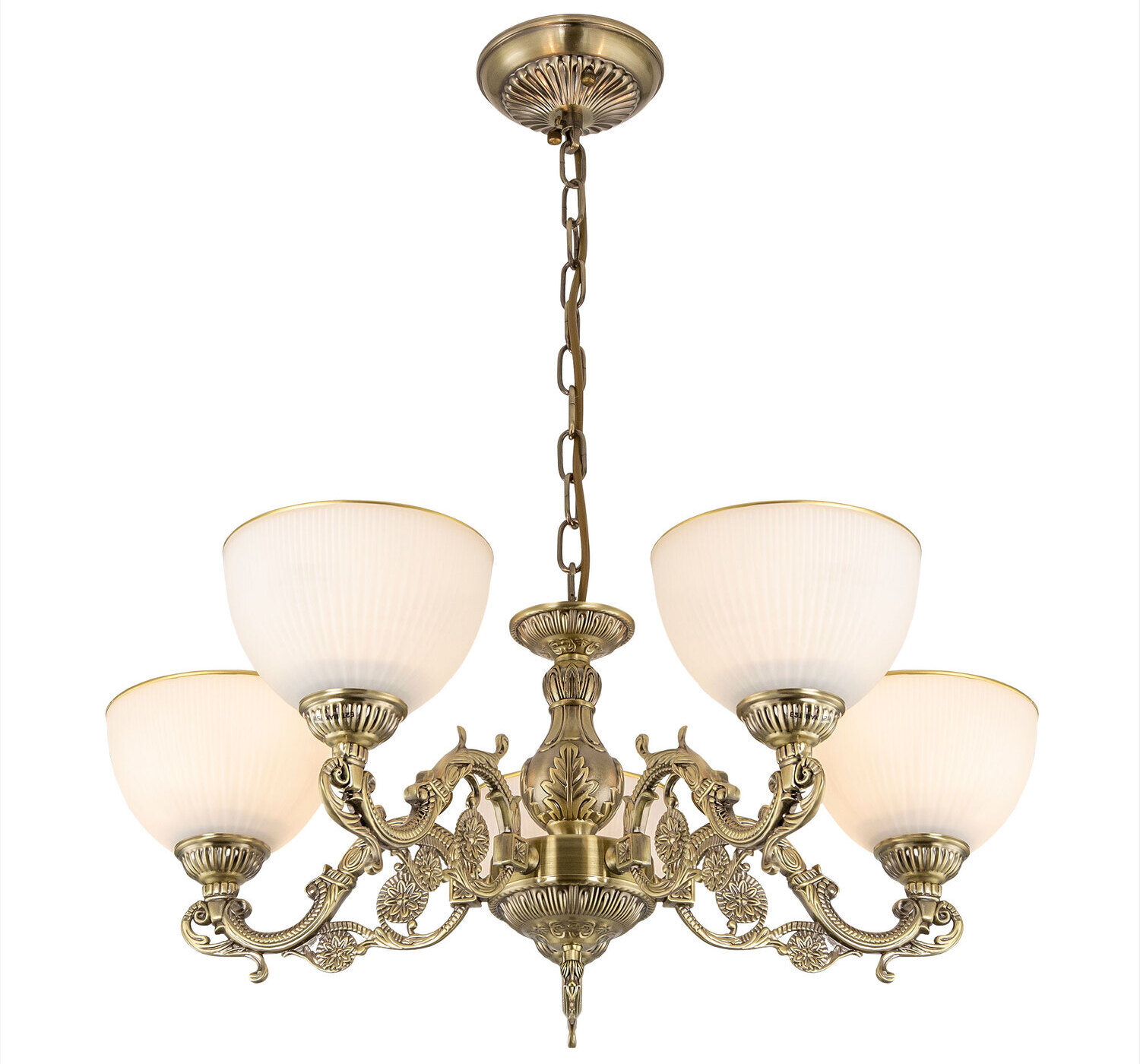 Пример люстры с плафонами, направленными вверх. От полотна до чаши должно быть не больше 20 см. Лучше использовать лампы накаливания. При соблюдении этих условий, такую люстру можно использовать в натяжных конструкциях.